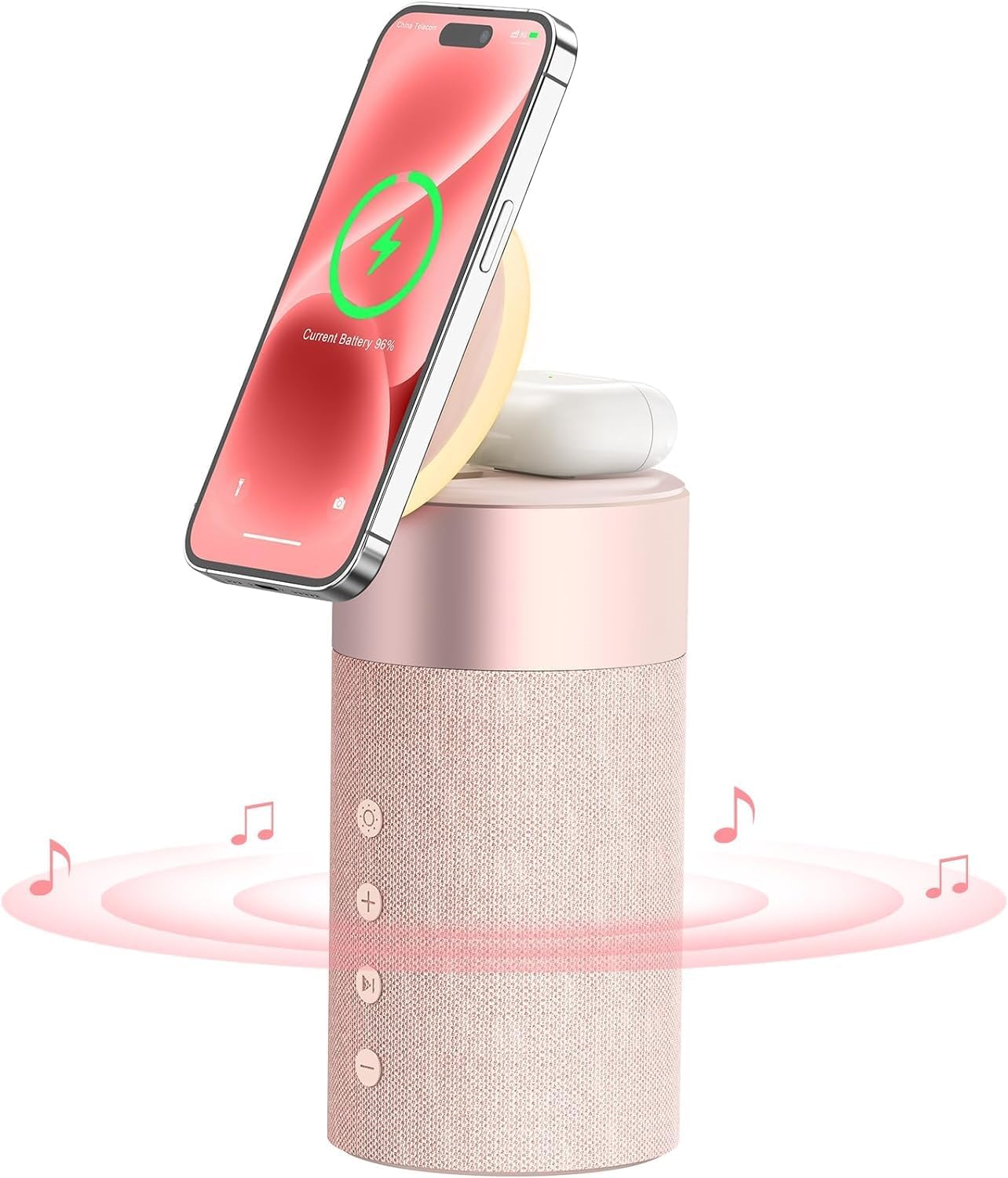 COLSUR Bluetooth Speaker with Wireless Charger and Night Light – 2‑in‑1 magnetic charging station
