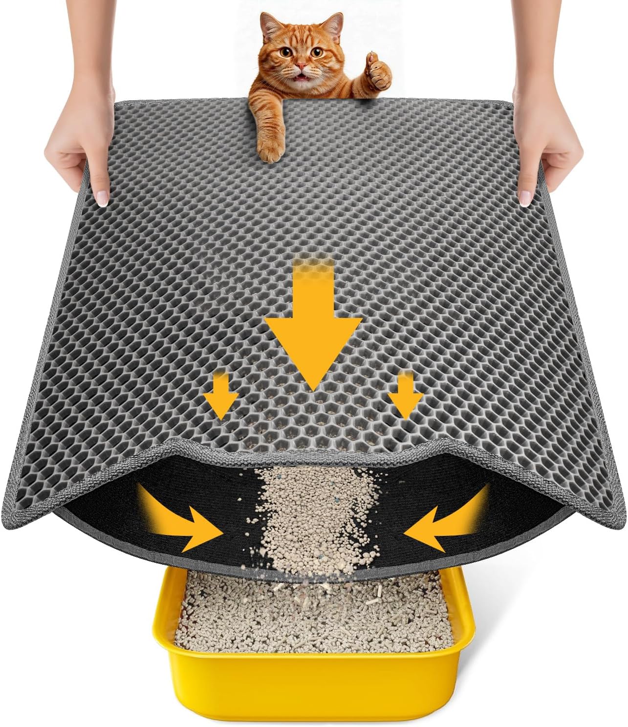 - Cat Litter Mat 90 x 60 cm EVA Double Layer Honeycomb Holes (Grey) – Waterproof litter tray mat
