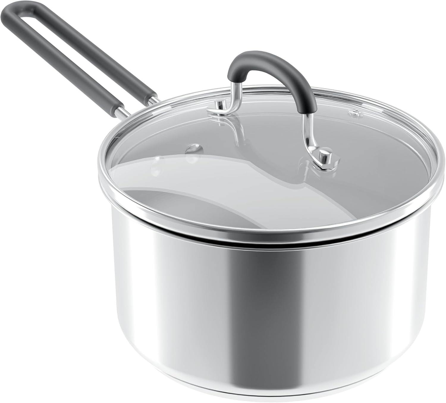 - Name: COOKNANO 18cm Stainless Steel Saucepan with Glass Lid, Stay-Cool Handle, 2L Oven Safe Stainless Steel Pan