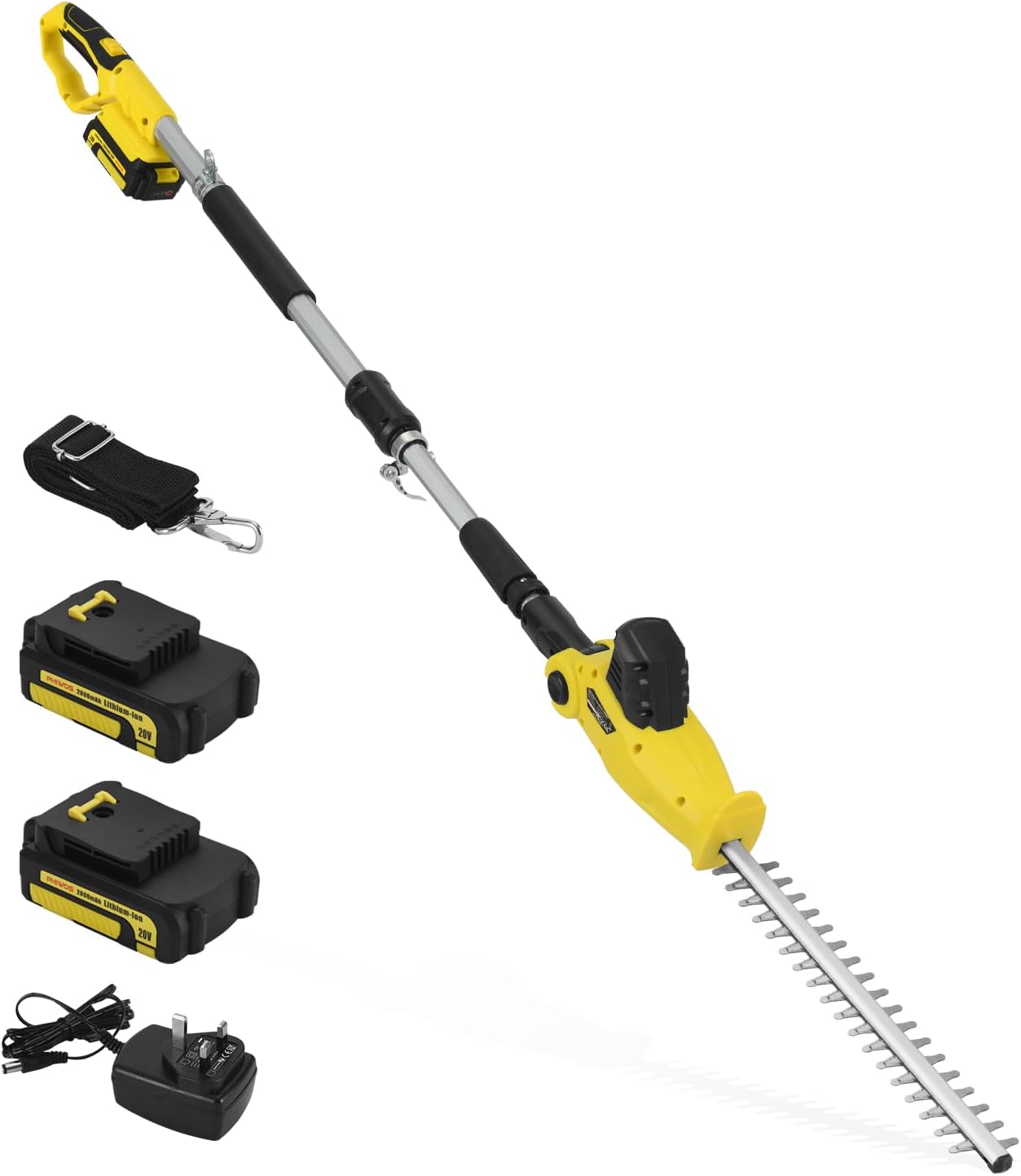 Cordless Pole Hedge Trimmer PHIWOS with 2.0Ah Battery & 1Hr Charger, 2Batteries, Telescopic Reach