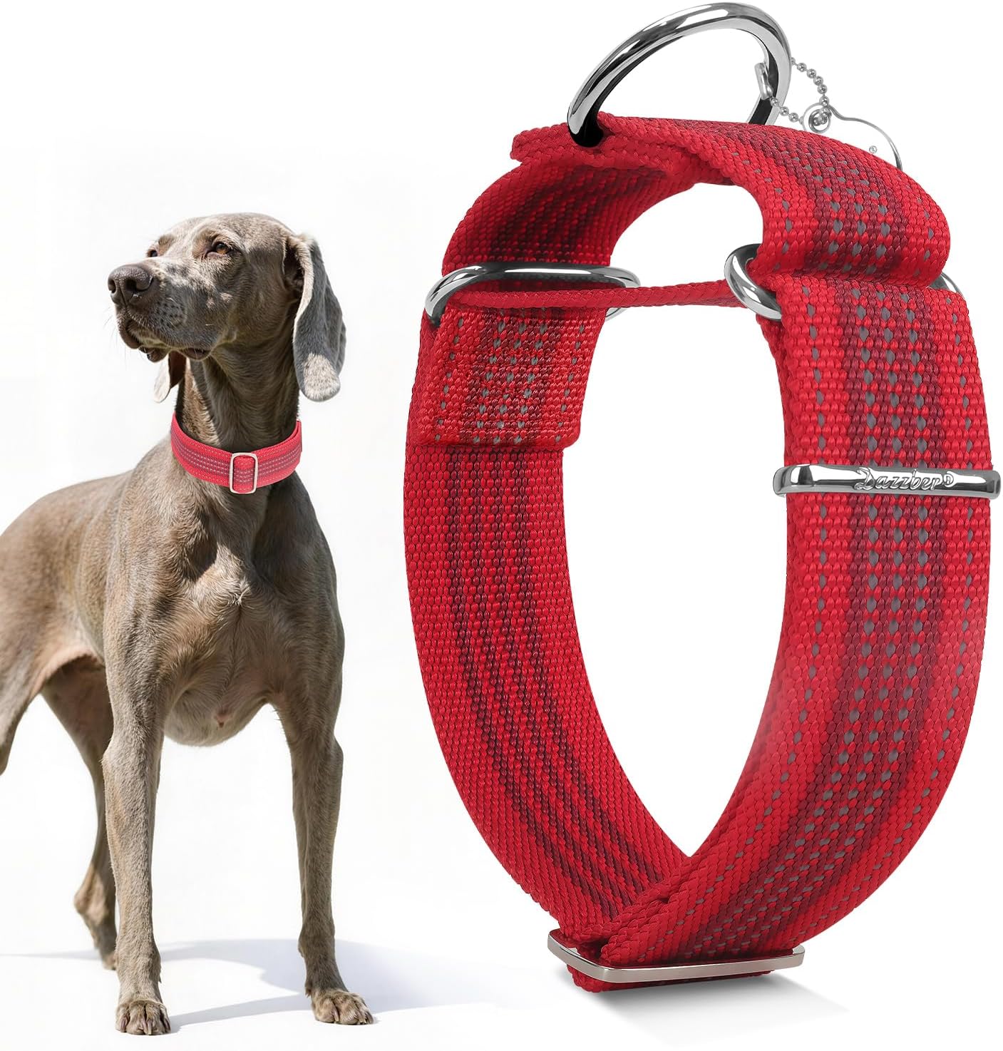 Dazzber 1.5" Martingale Dog Collar (Escape-Proof, Anti-Slip) – Large, Reflective Nylon in L-Classic Red