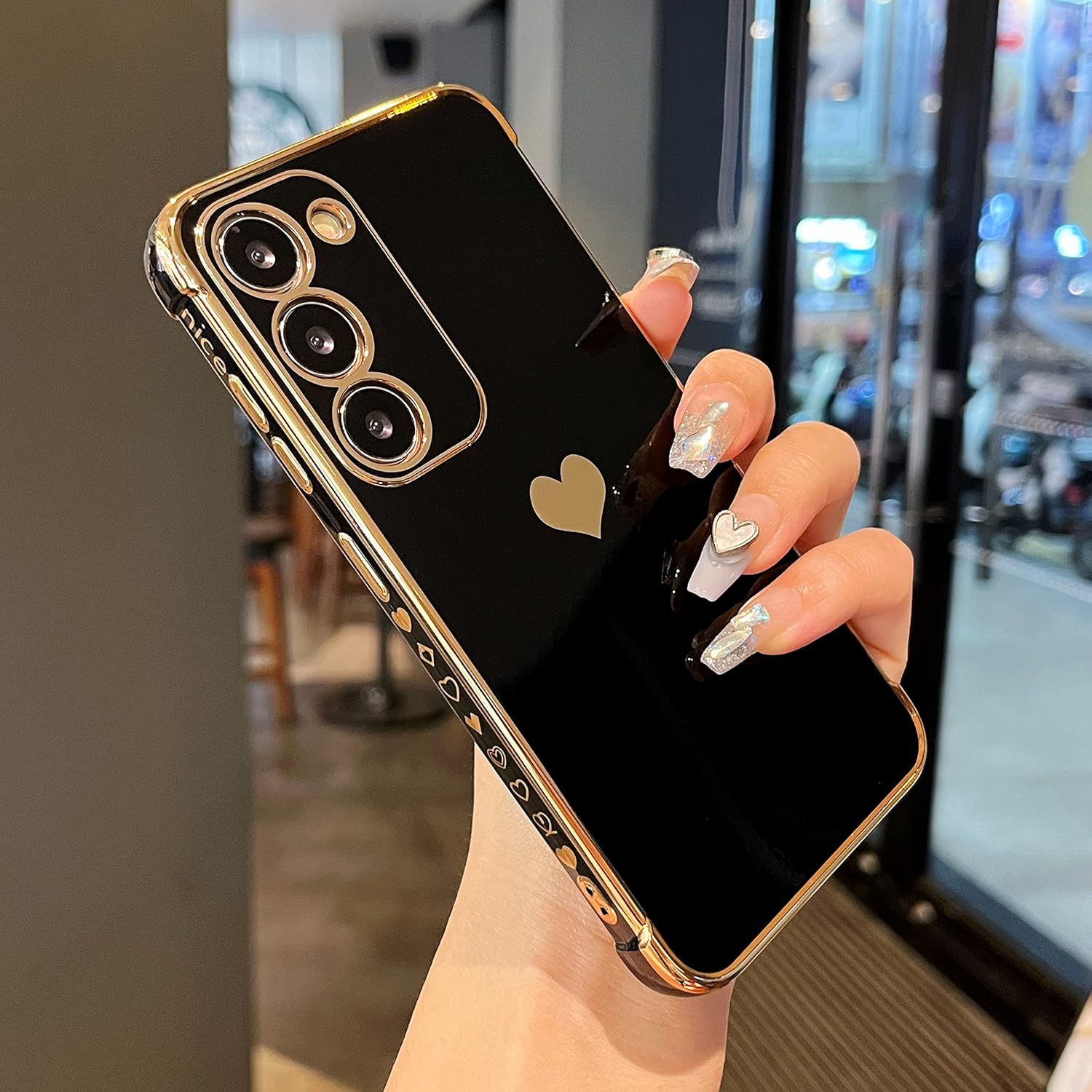 DEFBSC Case for Samsung Galaxy S23 – cute heart edge TPU shockproof phone case (black)