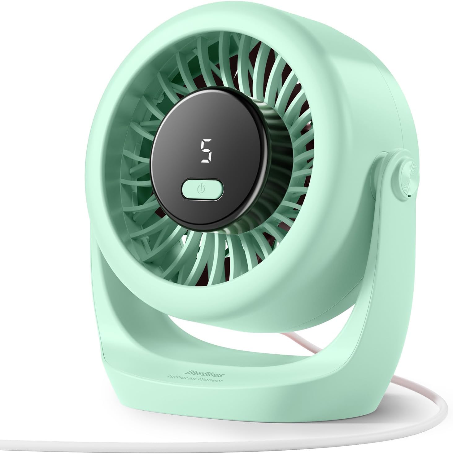If you’re after a small desktop fan that can help you cool down quickly at a desk, this Diveblues TurboBreeze is designed for exactly that kind of day-to-day use. It’s a portable “turbo” desk fan with a compact build, USB power, a visible LED display, and adjustable airflow via five speed gears.