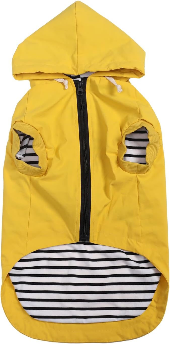 Dog raincoat waterproof jacket with hood, zipper & back pocket (Yellow) – Size S