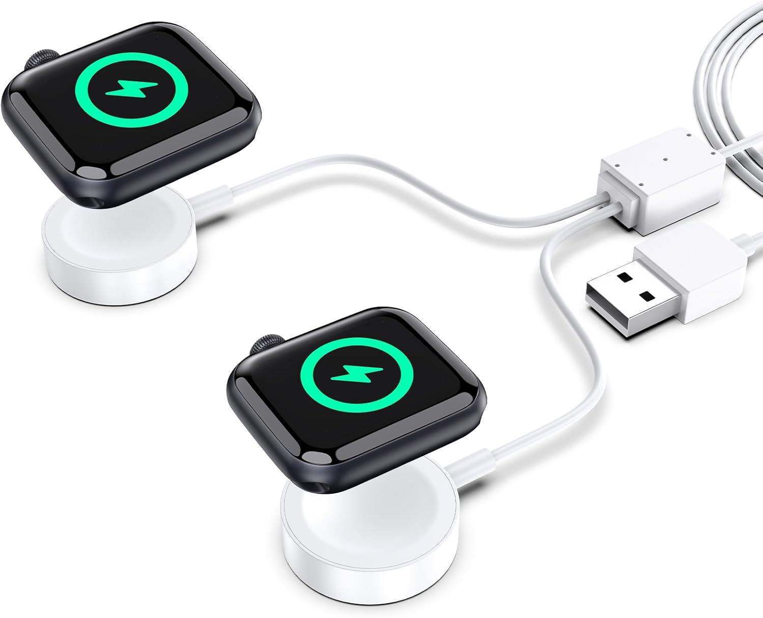 Dual Watch Charger Cable for Apple Watch (Magnetic Wireless) – Portable iWatch Charging Lead (Adapter Not Included)