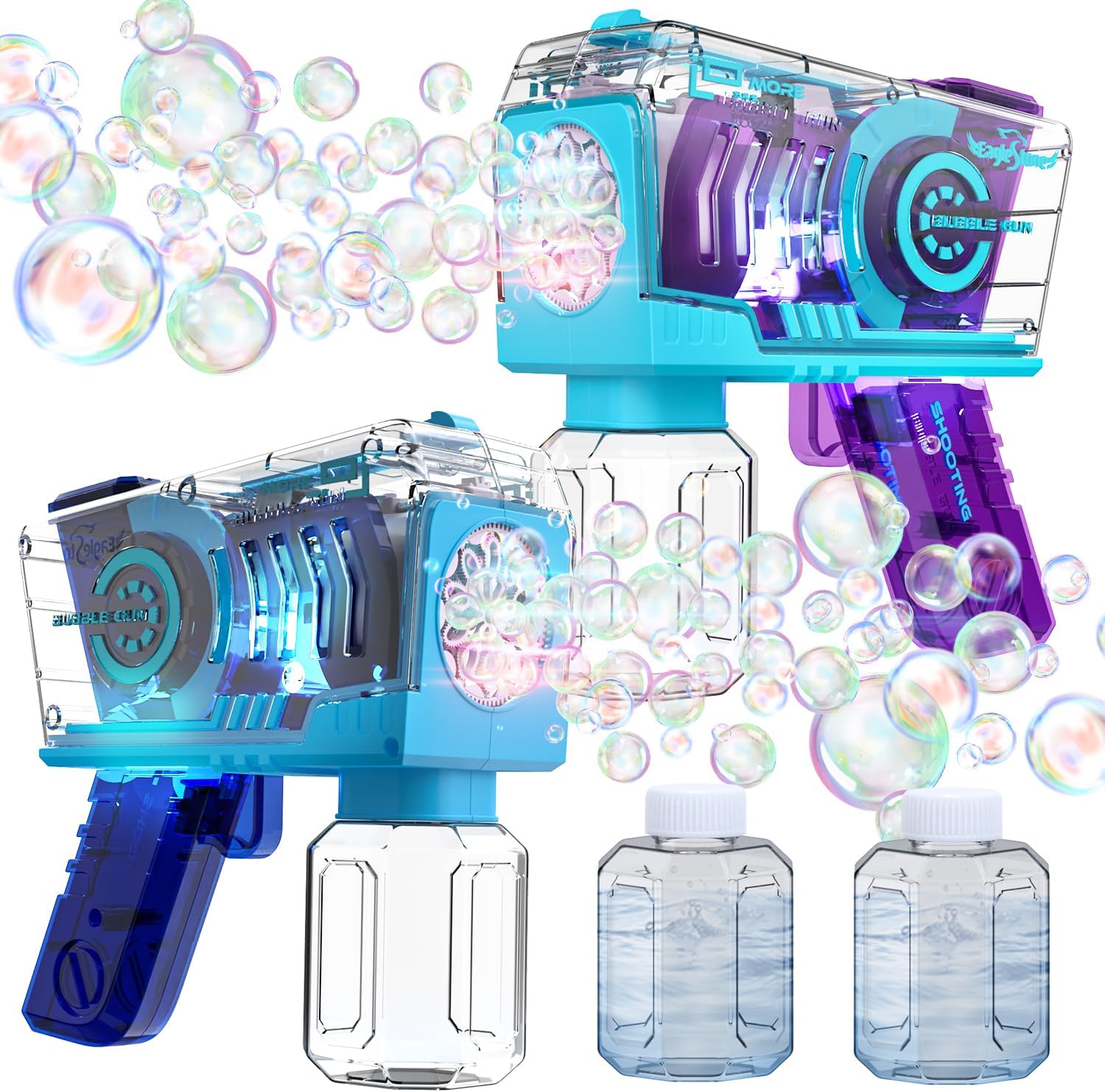 EagleStone Kids Bubble Gun 2 Pack with LED Lights and 10-Hole Blaster Wands