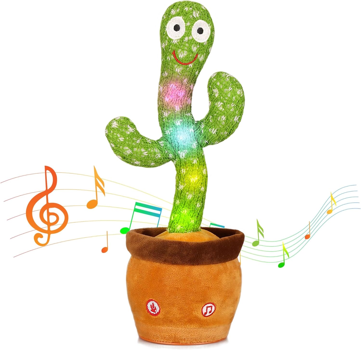This playful cactus toy brings animated dancing and singing to life, combining interactive voice recording with cheerful melodies. It records your voice with a long press and repeats it in a light hearted tone, inviting kids to experiment with sounds and language in a natural, encouraging way. The toy glows with colourful lights as it sways to music, offering a multisensory experience that sparks imagination and caregivers’ engagement during playtime. Built from soft knitted plush with PP cotton, it feels gentle and comforting to little hands and is sturdy enough for daily use. At 12.6 inches tall, it makes a charming desk companion or cosy bedtime buddy and wipes clean easily with a damp cloth. 🎵