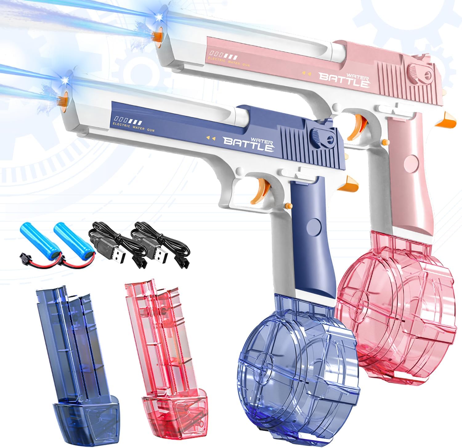 2 Pack Electric Water Pistol Guns for Adults & Kids – Automatic Squirt Guns, Long Range 30 ft, 450CC + 60CC