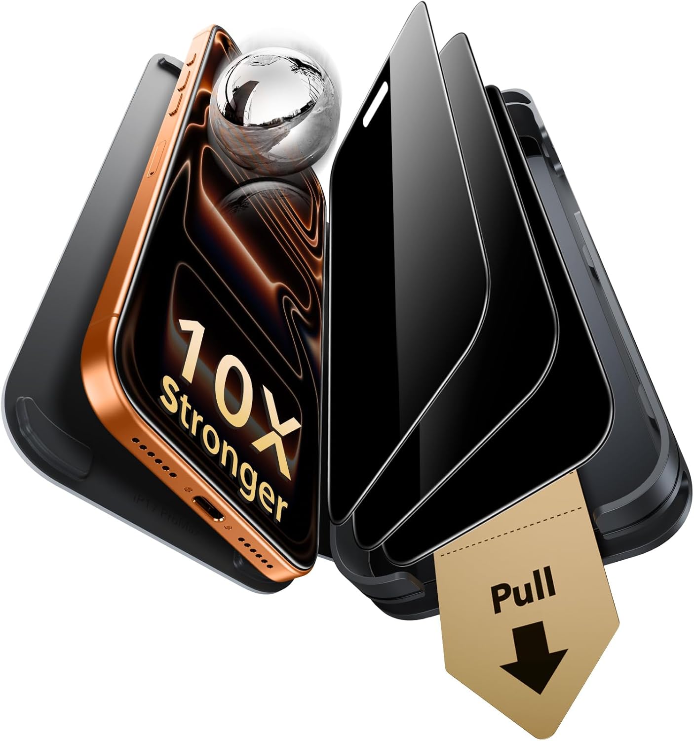 Included in the pack is: - Privacy screen protectors made with Accessory Glass by Corning (3-pack for iPhone 17/16 Pro series, as stated) - UltraFit installation tray - Cleaning kit - Manual