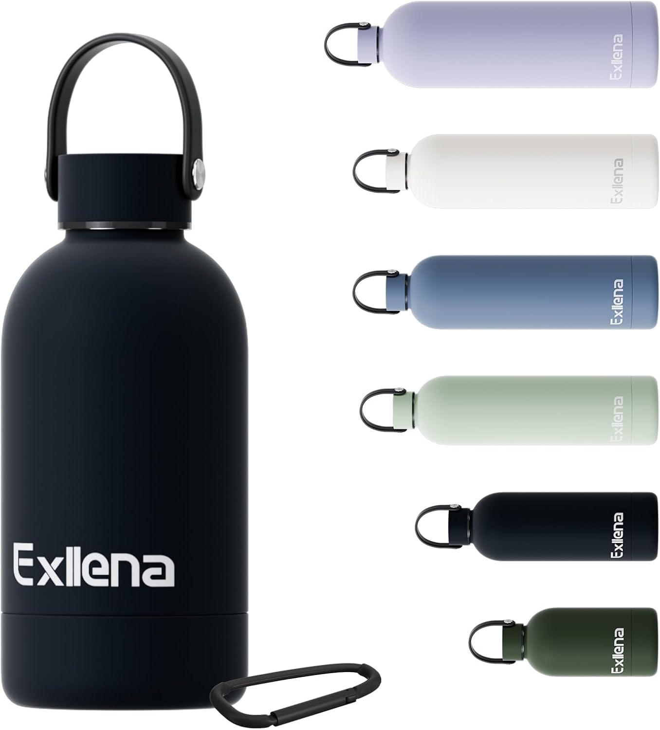 If you’re after a small insulated bottle you can actually carry around, this Exllena 350ml option is built for handbags and days out rather than the gym-drink-in-a-bucket style. On paper, it brings together a carry handle lid, a clip/carabiner for attaching, and double-wall vacuum insulation to keep drinks at the right temperature for a decent stretch.