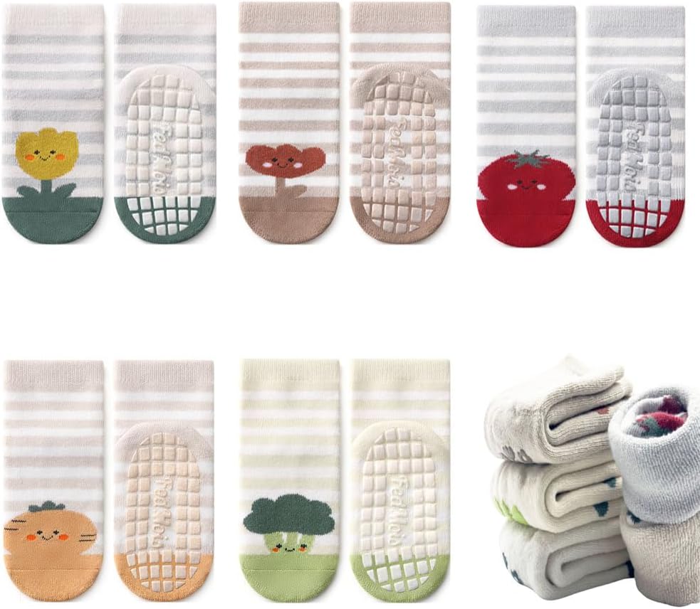 FedMois 5 Pairs Baby & Kids Warm Winter Crew Socks with Anti-Skid Grip