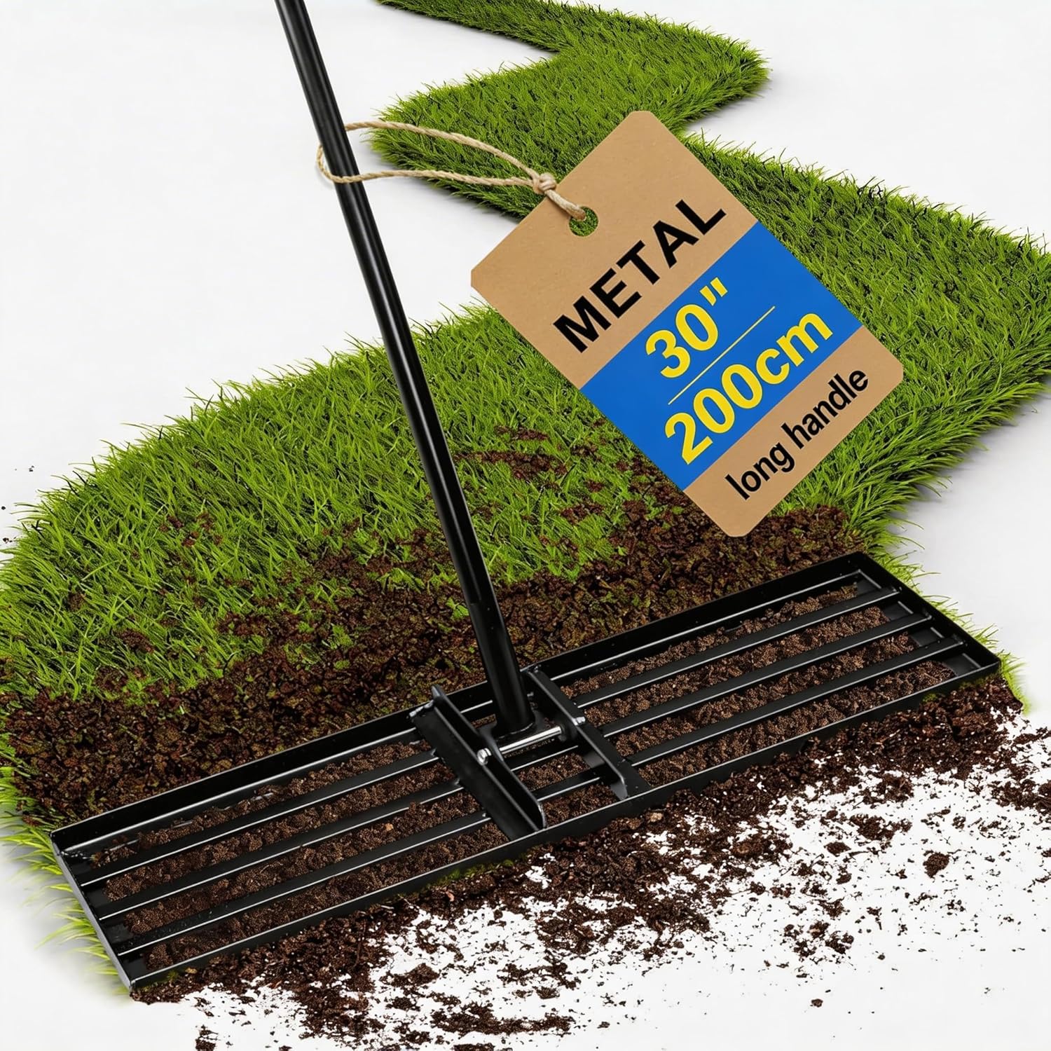- Lawn Levelling Rake – 43 x 25 cm lawn leveler with 109–157 cm ergonomic handle