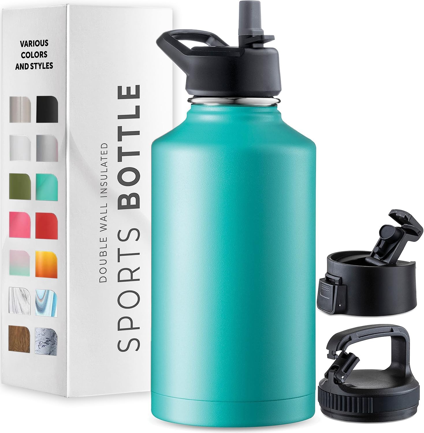 - Type: Insulated water bottle with multiple leak-proof lids