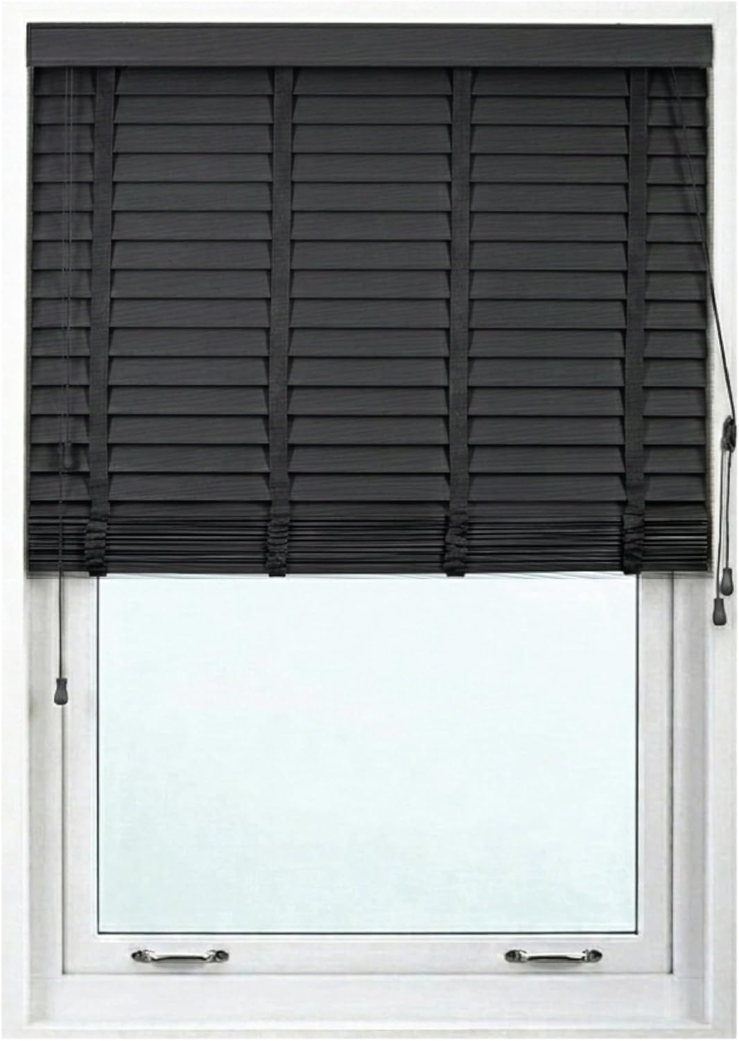 Generic Faux wood PVC Venetian Blind with 50mm slats – Easy Fit, child-safe, trimmable shutters (Dark Grey, 120cm x 150cm)