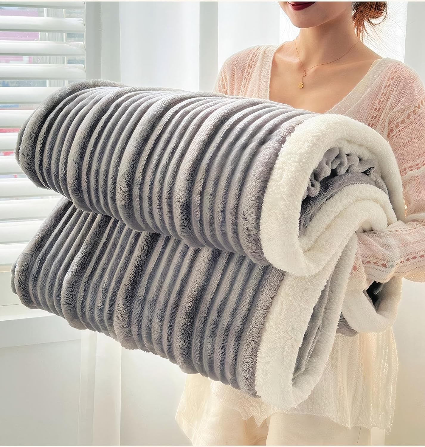 There’s also an all-over ribbed/striped style described as having a unique channelled texture. In practice, this kind of design can help the blanket look more intentional draped over a sofa or at the foot of a bed, rather than looking like a plain sheet.