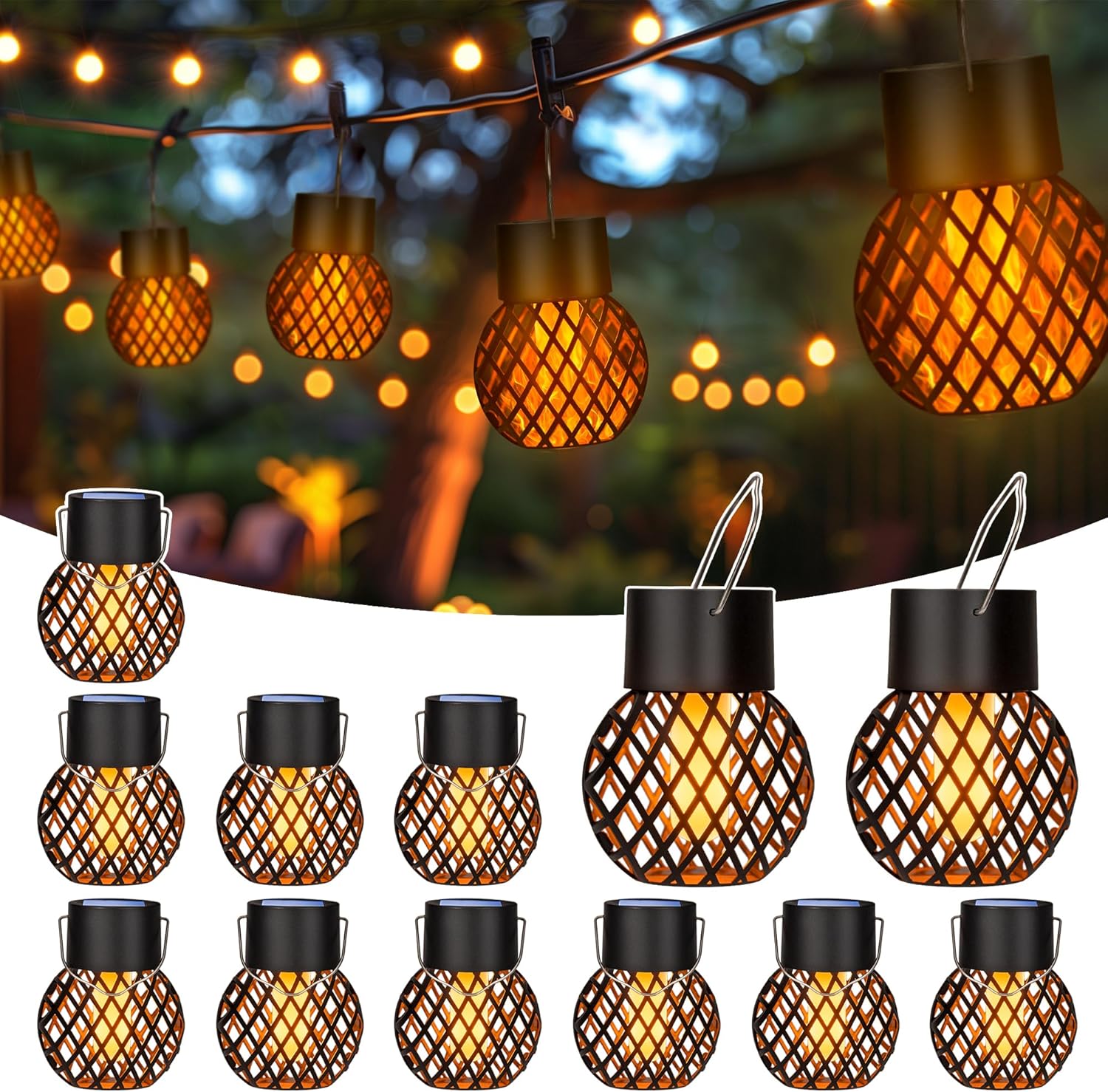 GIGALUMI Solar Flame Flickering Hanging Lights (12-pack) for Outdoor Garden