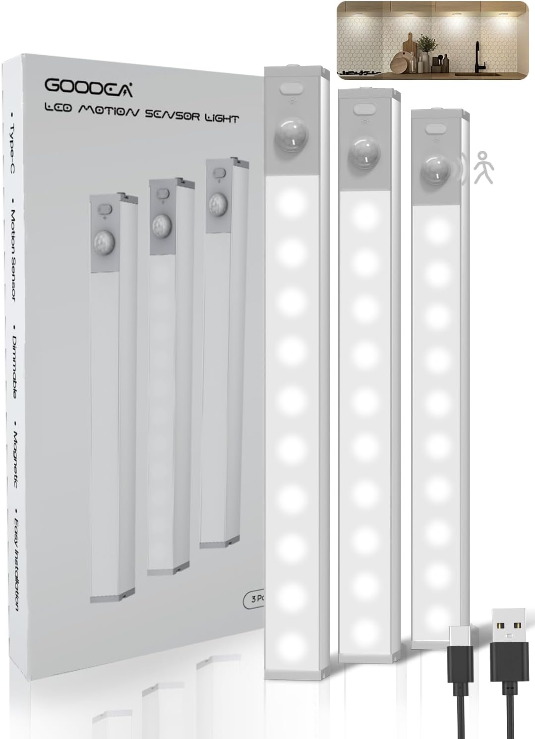 If you often fumble for the light in a cupboard, wardrobe, drawer or dim stair area, this GOODEA rechargeable under-cabinet “stair light” is aimed at solving that exact annoyance. It’s a small 18cm aluminium alloy cabinet light with 10 LEDs, designed to sit under shelves or along edges where you want a practical glow rather than overhead lighting.