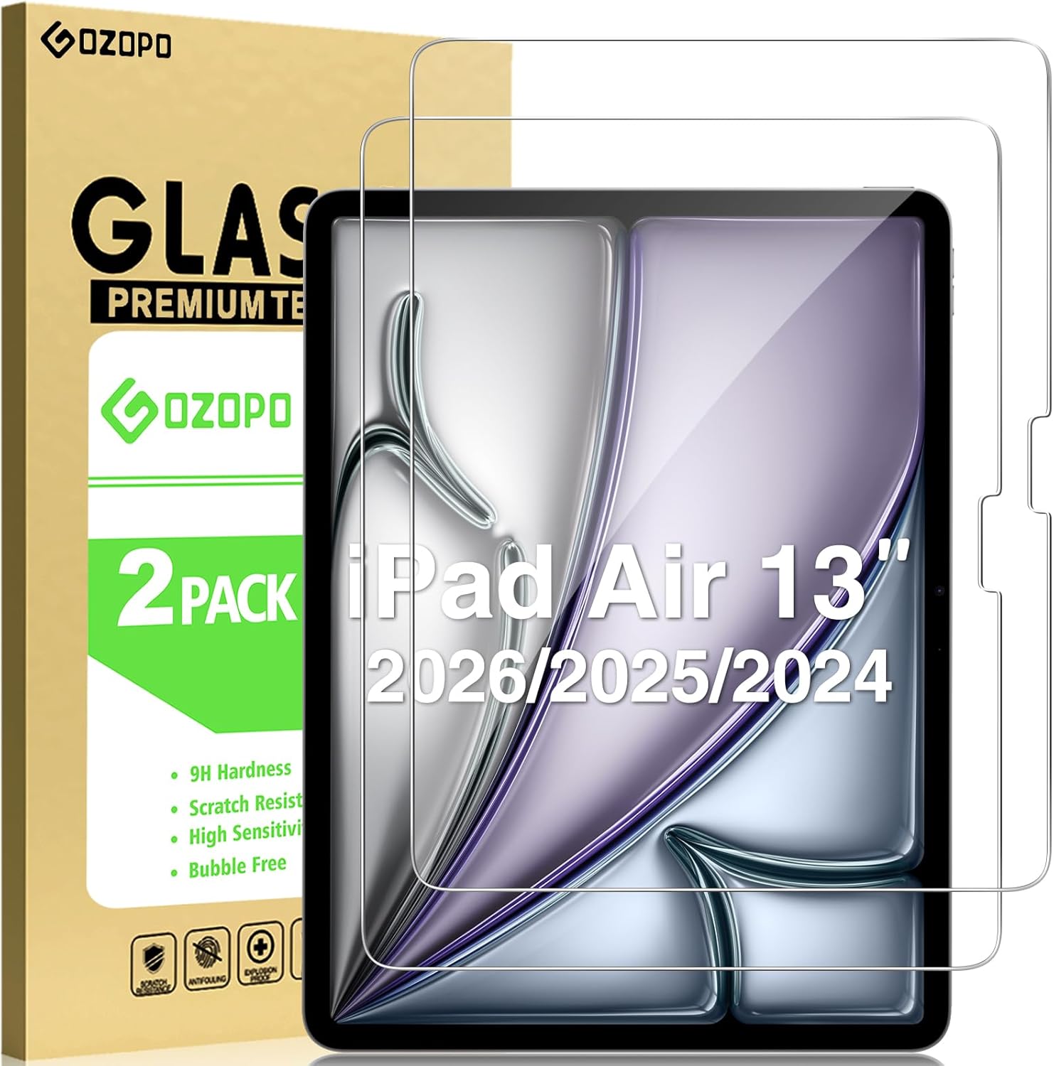 GOZOPO 9H Tempered Glass Screen Protector for iPad Air 13 inch (2026/2025/2024) – 2 Pack
