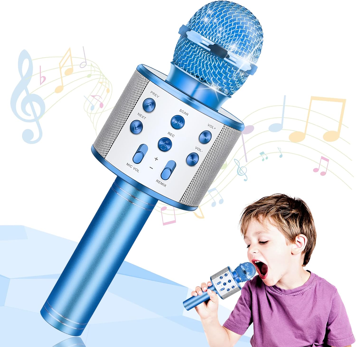 Hapikids Bluetooth Kids Microphone Toy (3–12 years) – Portable wireless singing mic & speaker in blue