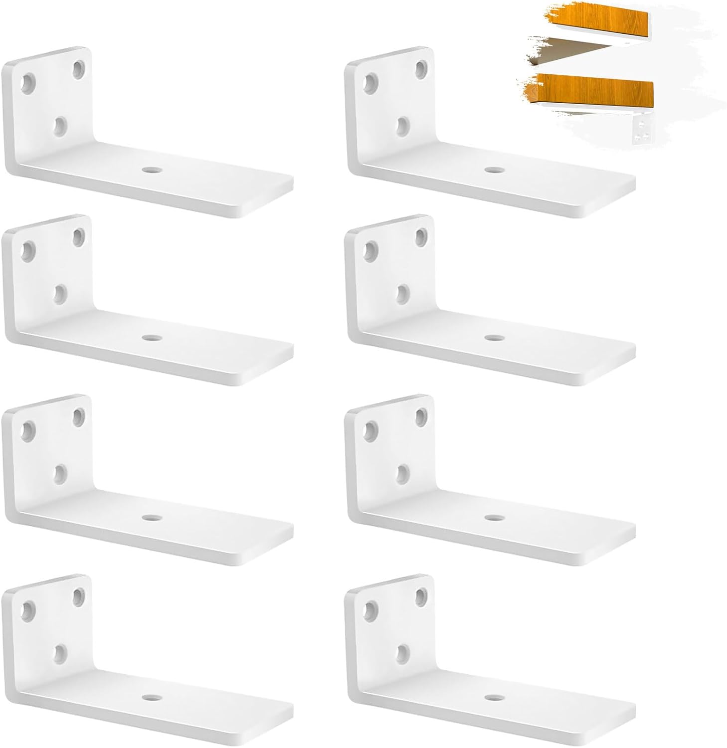 Heavy Duty Floating Shelf Brackets 4 inch (8 Pack) – Solid Steel L-Shaped Wall Supports, White