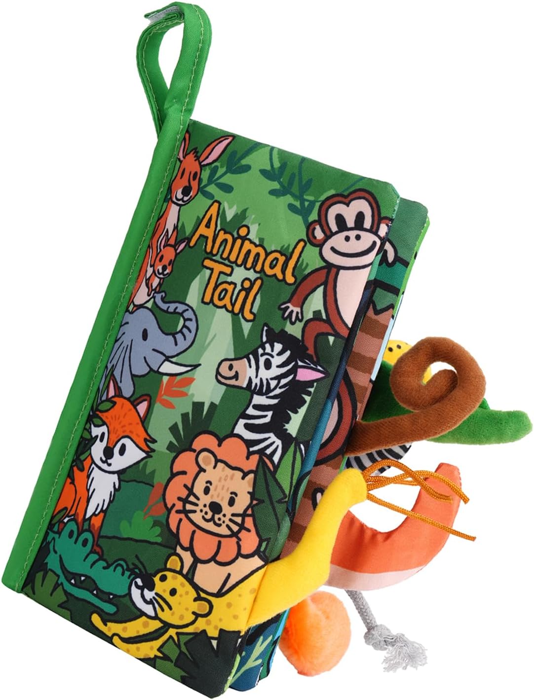 HECCEI Baby Books Sensory Jungle Cloth Book with Crinkle Pages & Tail Touch Feel (0–12 months)