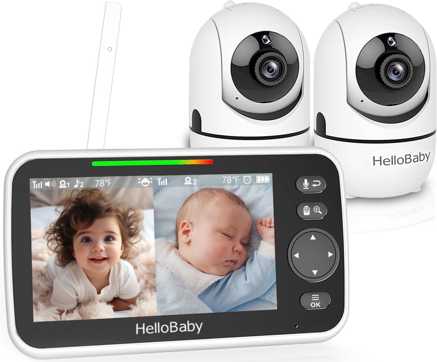 - HelloBaby Baby Monitor 1080P, 2‑Camera, 5.5″ Split‑Screen
