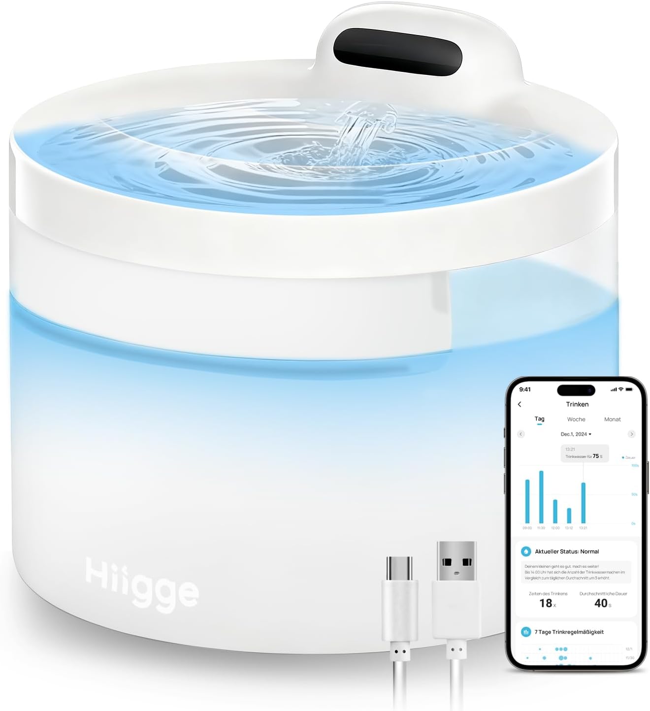 - Name: Hiigge cat water fountain for drinking (wireless with app)