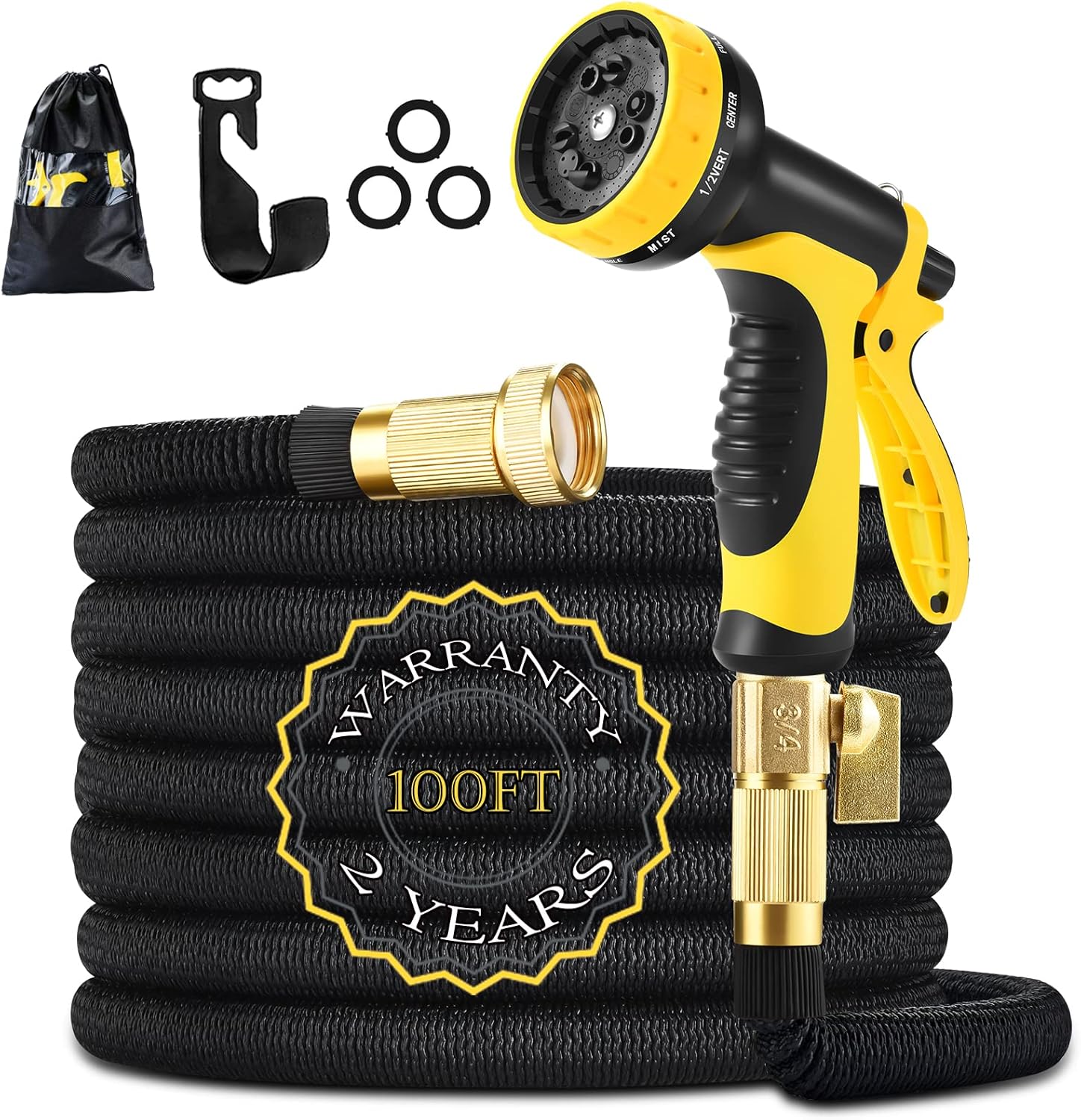 - Evviee 100FT Expandable Garden Hose Pipe with 10-Pattern Spray Nozzle
