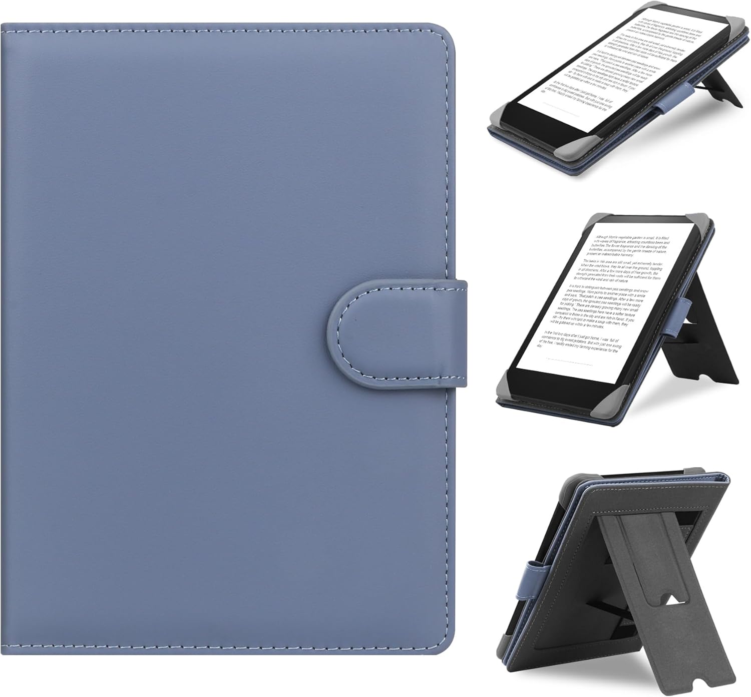 The cover balances protection and portability, made from soft-touch PU leather with a microfiber inner lining that reduces scratches and absorbs light shocks. It has four silicone corner clasps that hold devices of slightly different sizes securely, and two adjustable foldable stands that allow reading at multiple angles for comfort. An elastic hand strap gives a confident one-handed grip when you are on the move, and the ultra-slim design slides easily into a bag or large pocket. Note that it is not compatible with Kindle Oasis 7-inch readers, so check the device dimensions before choosing this cover. 📖
