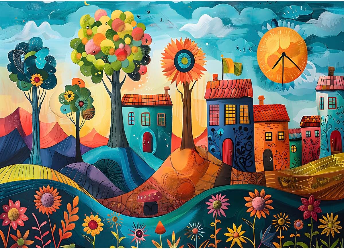 HUADADA 1000-Piece Jigsaw Puzzle for Adults – Colourful Village Scene