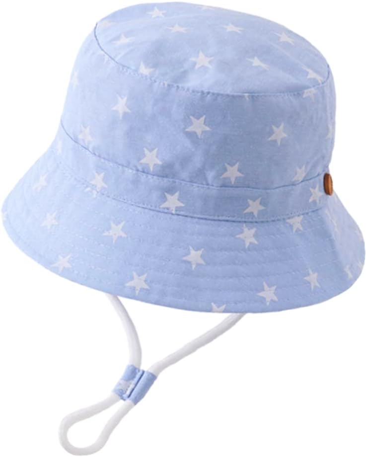 imKutie Baby Sun Hat (UPF 50+) – Adjustable Bucket Hat with Chin Strap, Cartoon Animal Shark & Star Print
