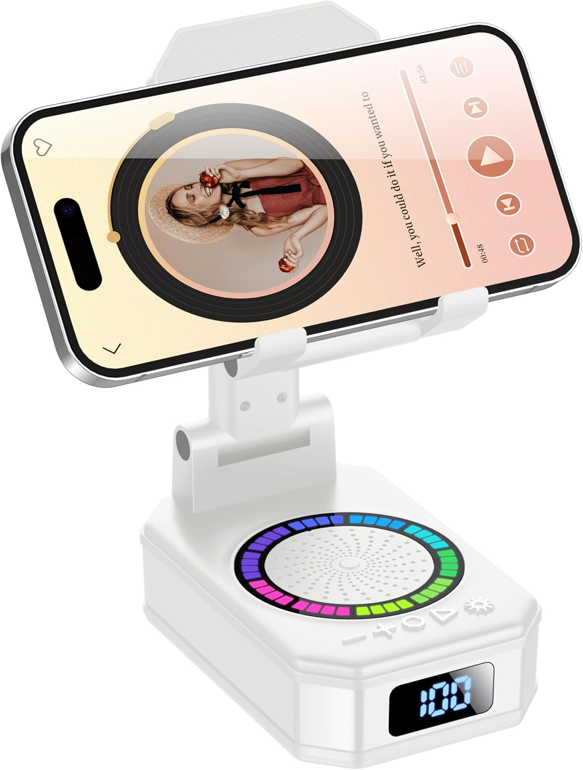 - Hupoaf phone stand with Bluetooth speaker (4-in-1) for birthdays, Christmas and everyday use