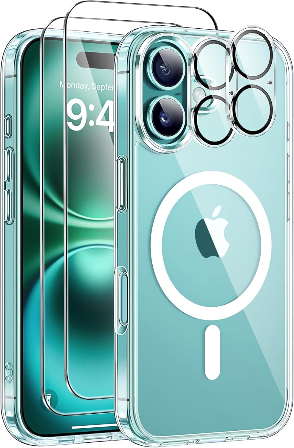 This clear protective case for iPhone 16 combines a shock-absorbing bumper with a rigid transparent back to keep the phone looking as new while supporting MagSafe accessories for everyday use. It includes two screen protectors and two camera lens protectors so you can protect both front and rear glass from scratches and impacts when you're commuting or travelling.