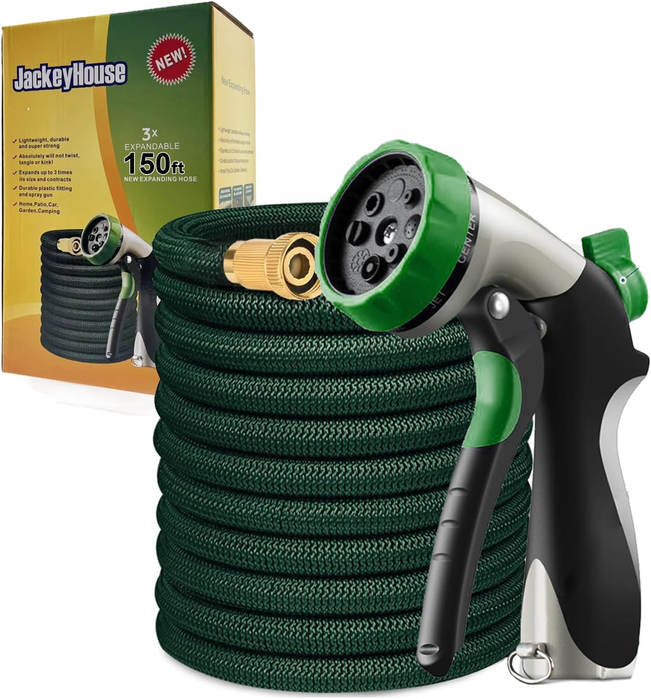 Jackeyhouse Heavy Duty Magic Stretch Flexible Expandable Garden Hose Pipe with 8-Pattern Zinc Alloy Nozzle (100ft/150ft/200ft)