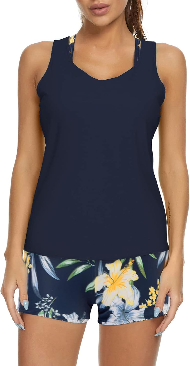 - Hanna Nikole 2 Piece Tankini Swimsuits for Women with Ribbed Tankini Tops and Boyshorts