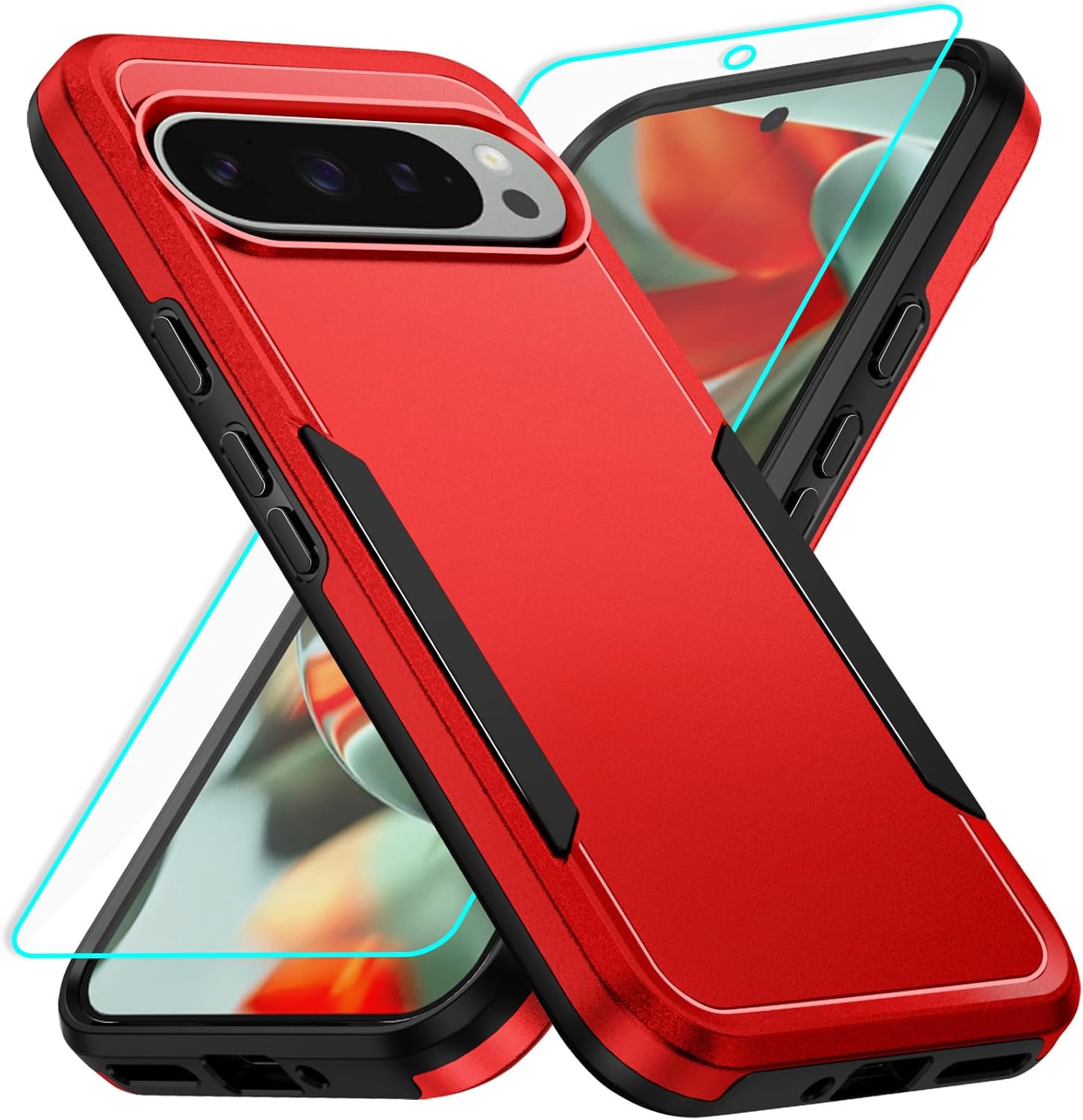 Jihucase Heavy-Duty Double-Layer Case with Screen Protector for Google Pixel 9 Pro XL (Red)