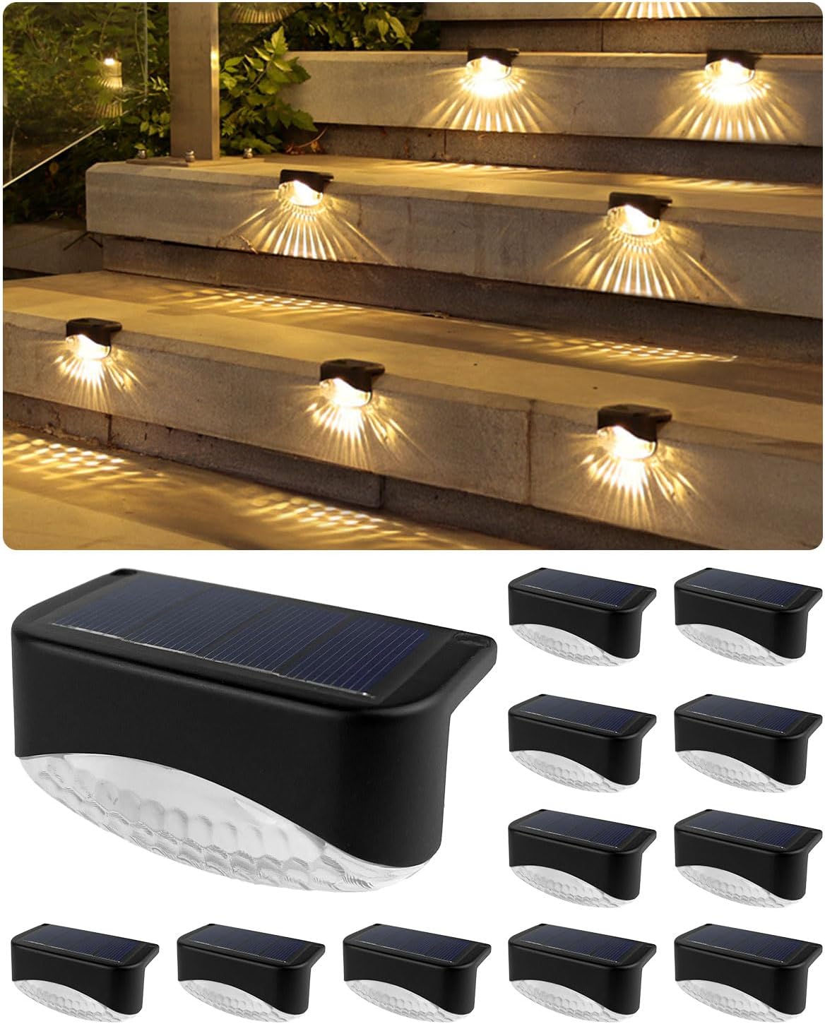 KALAHOL 12-Pack Solar Fence Lights (Warm White) – IP65 waterproof outdoor step lights