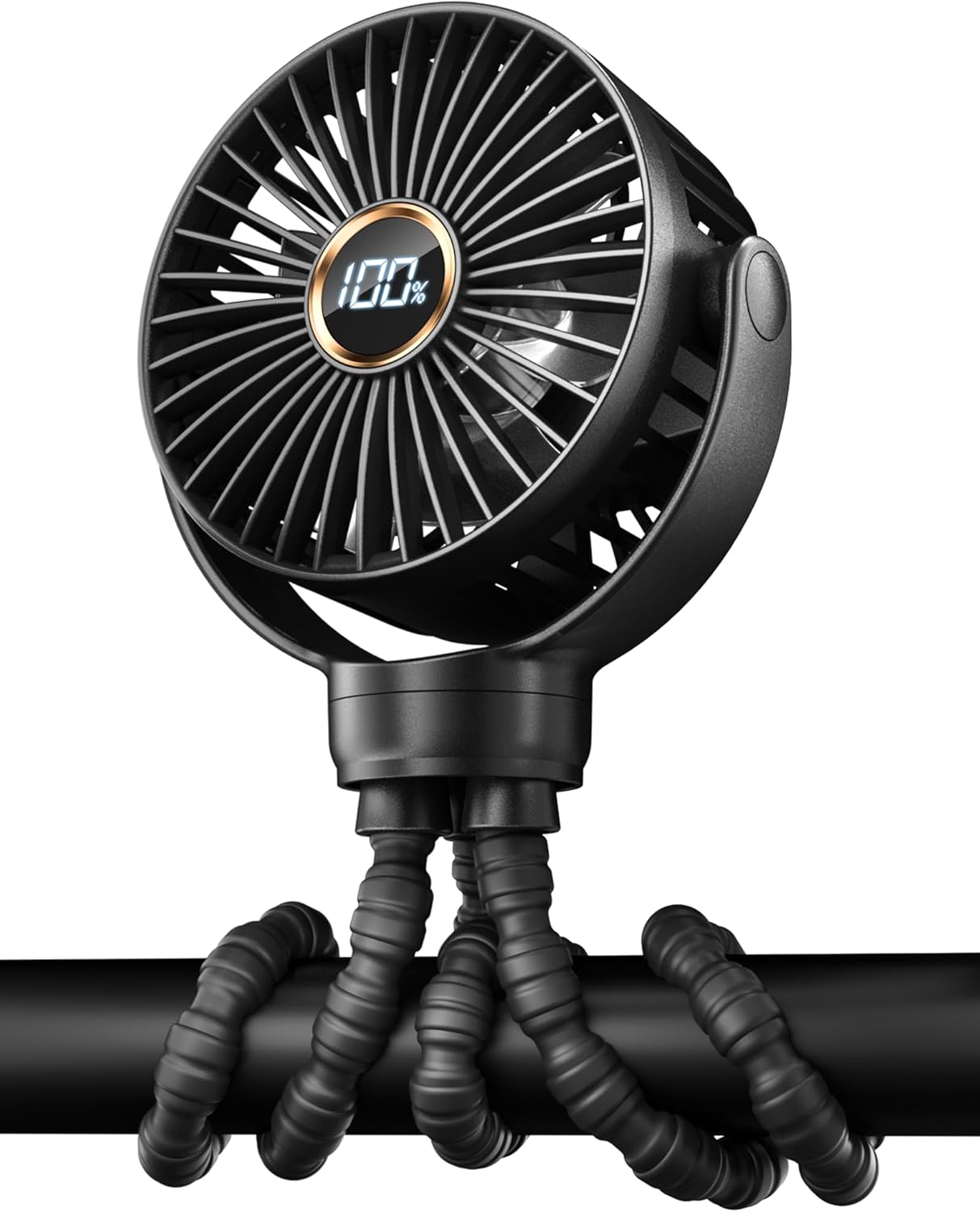 - GUSGU Large Stroller Fan Clip-on with Flexible Tripod & Rechargeable Battery (Black)