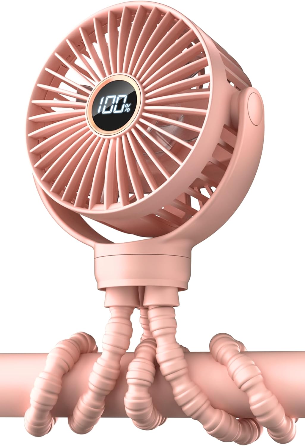 - Amacool Pram Fan Battery Operated Clip-On Fan with 3 Speeds, Rotatable Head & Flexible Tripod Legs (Pink)