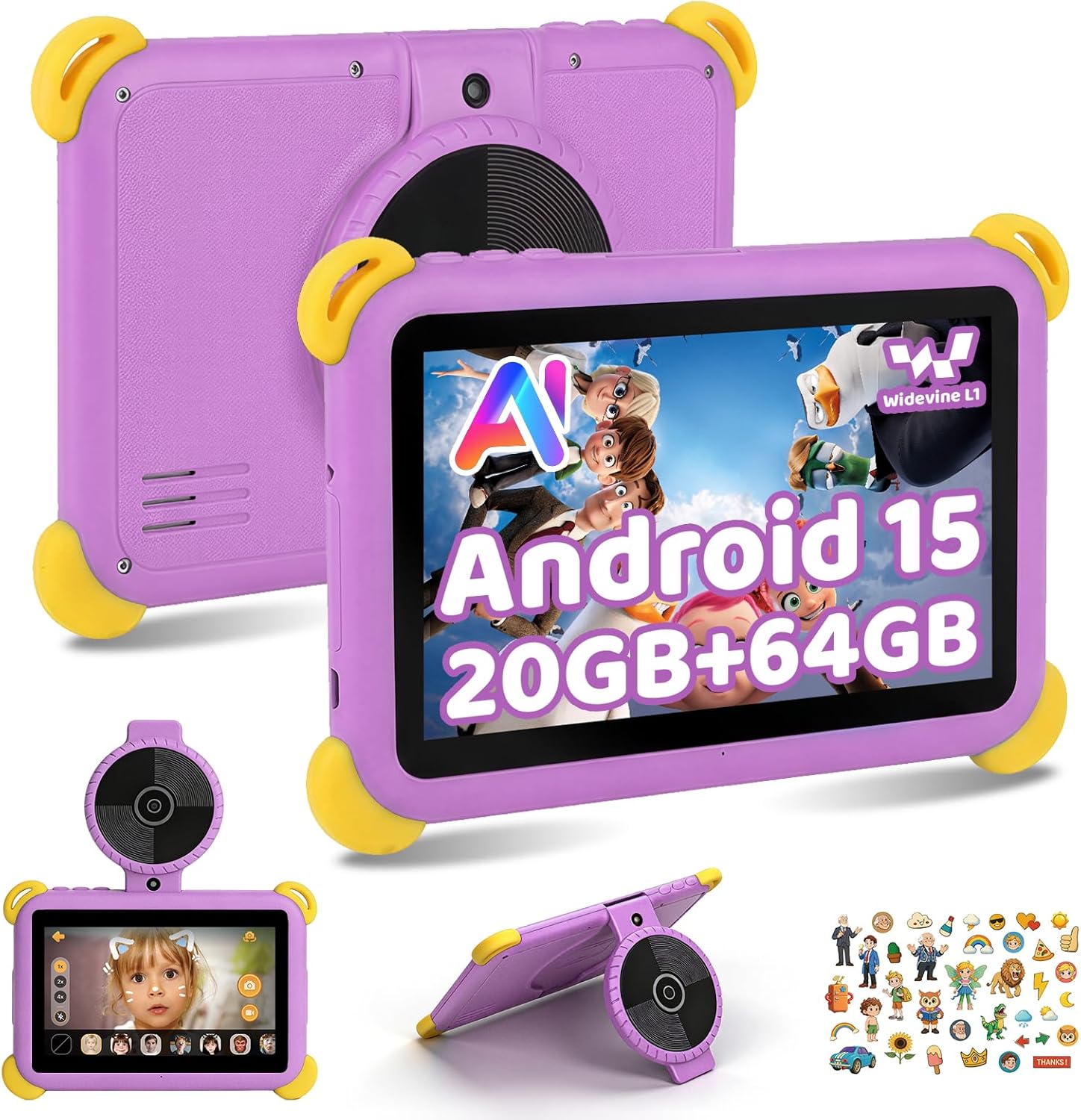Kids Tablet 7 inch Android 15 with Parental Control, AI Dual Cameras & Learning (Purple, WiFi 6/BT 5.3)