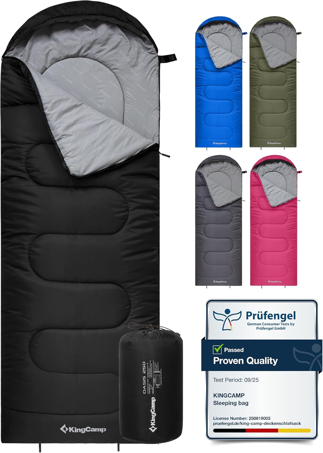 - KingCamp Oasis 3–4 Season Waterproof Sleeping Bag (Left–Right Connectable) for Children & Adults