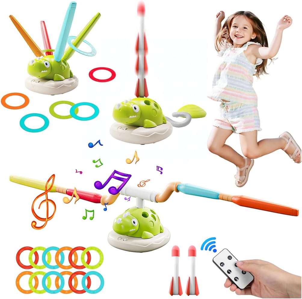 Kssvzz 3 in 1 Kids Toys dinosaur musical jump, rocket launcher & ring toss game (ages 3-12)