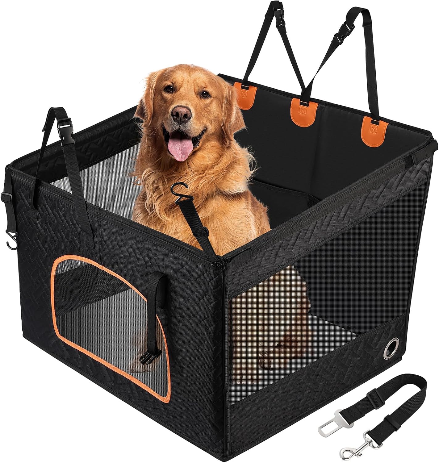 KYG Large Dog Car Seat for Medium to Large Dogs – Waterproof Rear Seat Extender with Mesh Windows