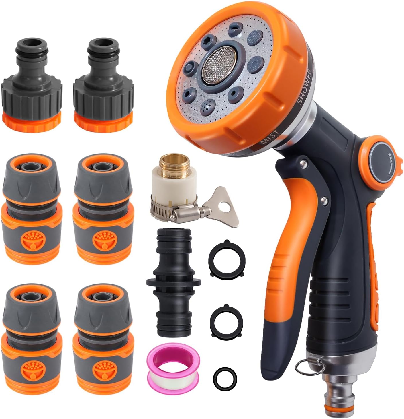 Laihur 8-Spray Hose Pipe Spray Gun & Garden Hose Connector Kit for Terraces, Courtyards and Car Cleaning