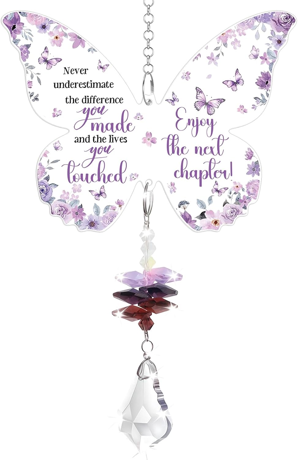 If you’re trying to find a leaving gift that feels personal (without turning it into something overly sentimental or bulky), this butterfly crystal suncatcher is an easy one to picture in everyday life. The idea is simple: hang it somewhere that gets natural light, and let the butterfly shape and engraved message do the talking while the crystals catch the sun.