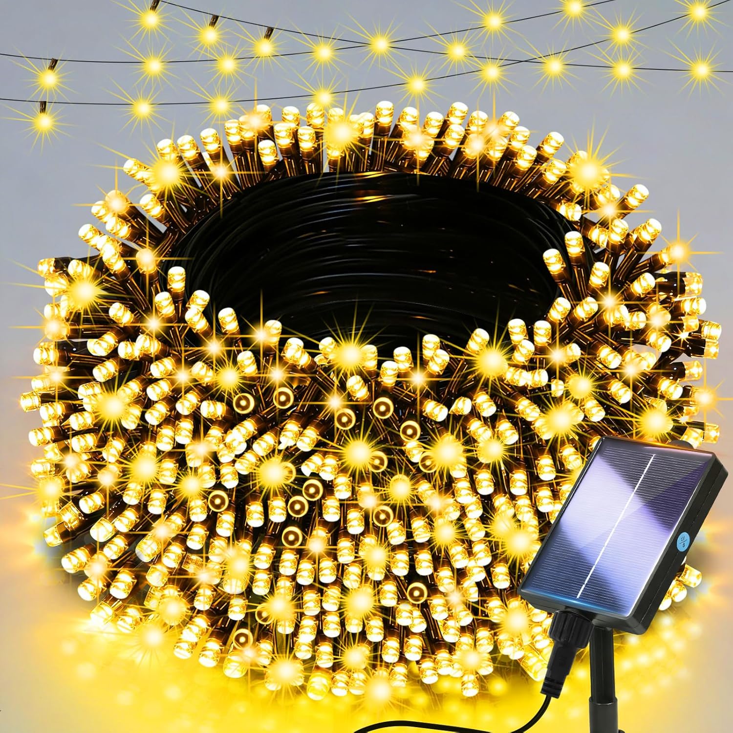 - cshare Solar String Lights (2 Pack, 50 LEDs) with 8 Lighting Modes – Warm White Outdoor Fairy Lights, Waterproof