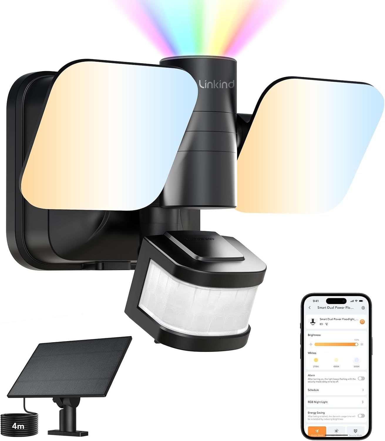 Linkind Smart Hybrid Security Light (Solar & Mains) 25W 3000LM with 240° PIR, App Control, CCT Dimmable & RGB