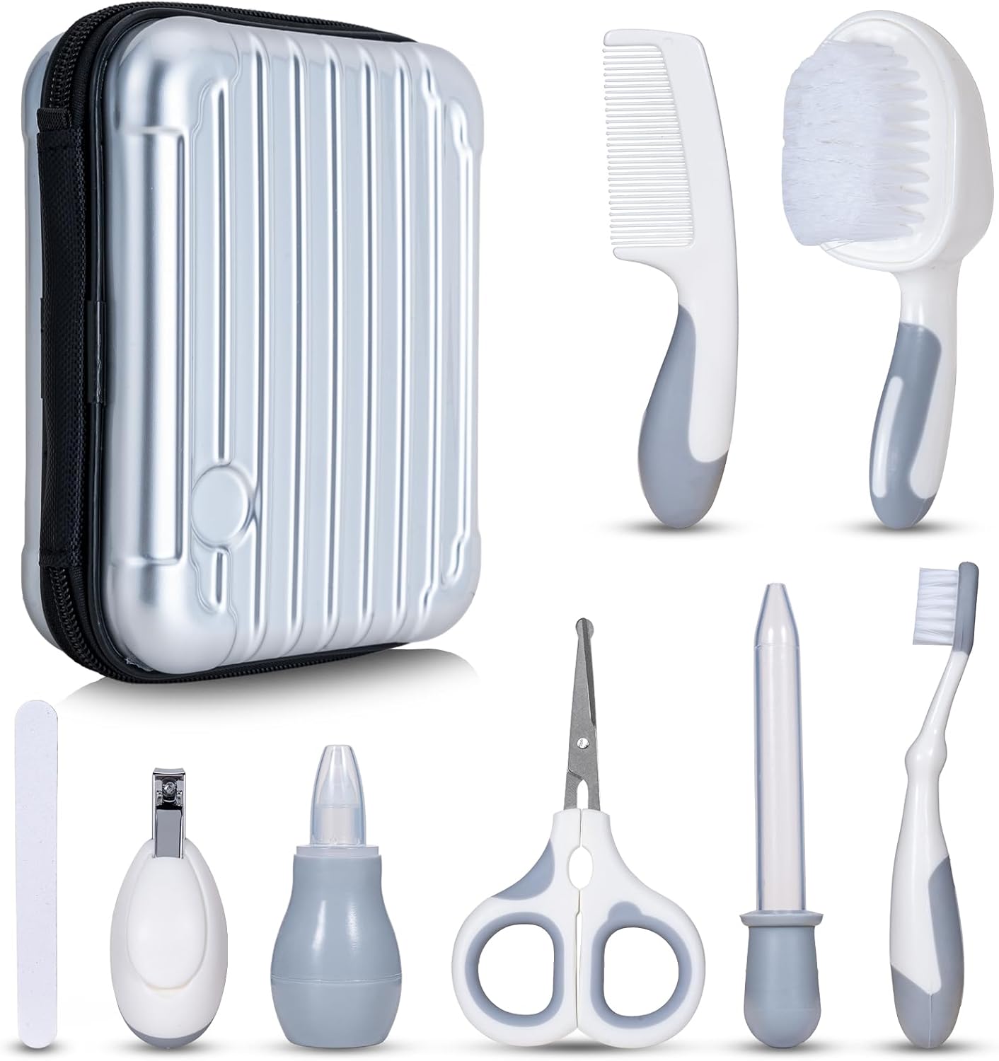 It’s packaged as a safety-focused nursery care set, and it comes with a tote case so the pieces stay together. That matters more than you might think when you’re dealing with limited space, frequent changes of environment, and trying to keep grooming essentials to hand.