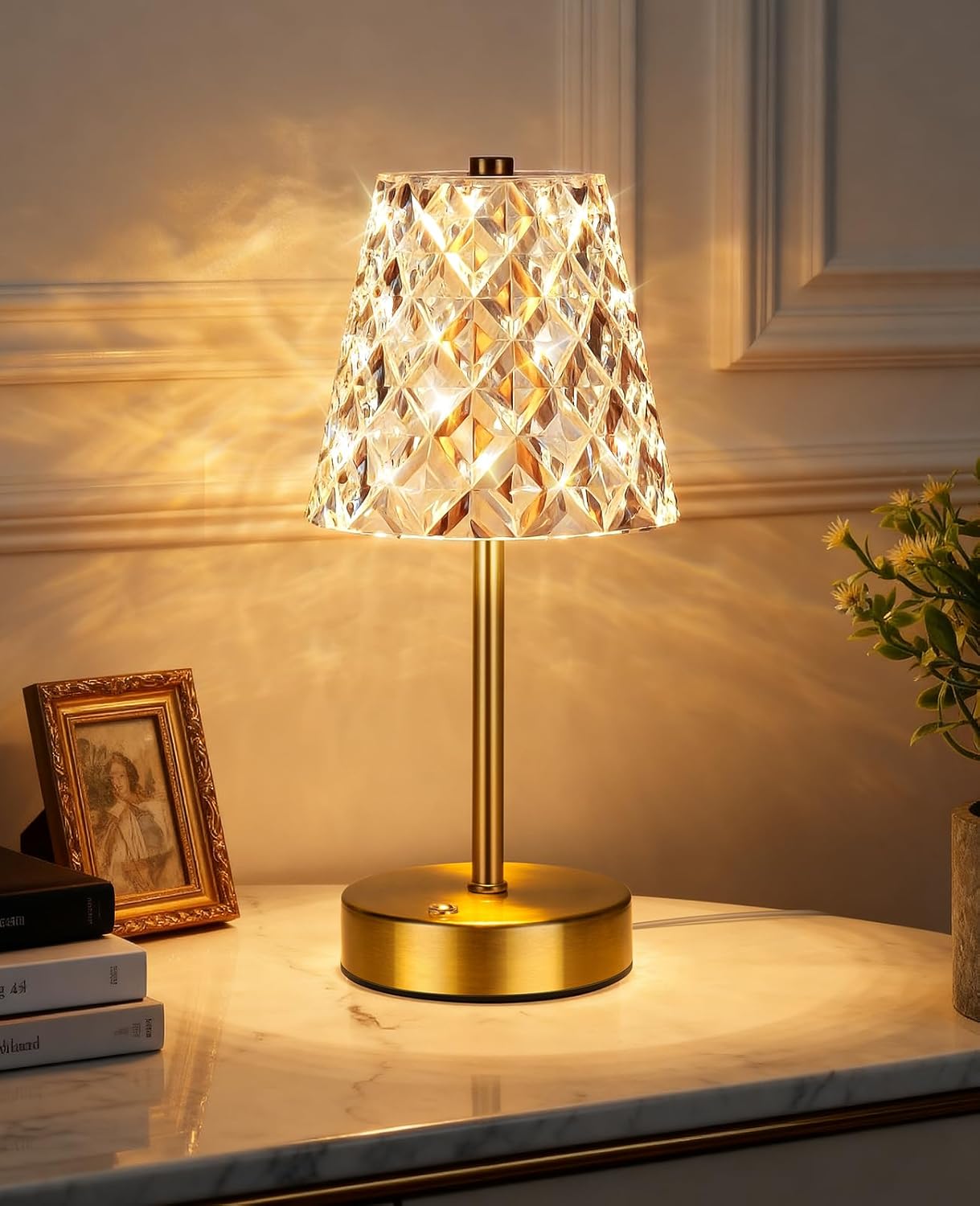 Also, the design is described as an acrylic lampshade with a square pattern and premium LED beads, paired with a sturdy gold base. That’s more about the vibe than technical performance, but it matters if you’re trying to keep the room looking cohesive.