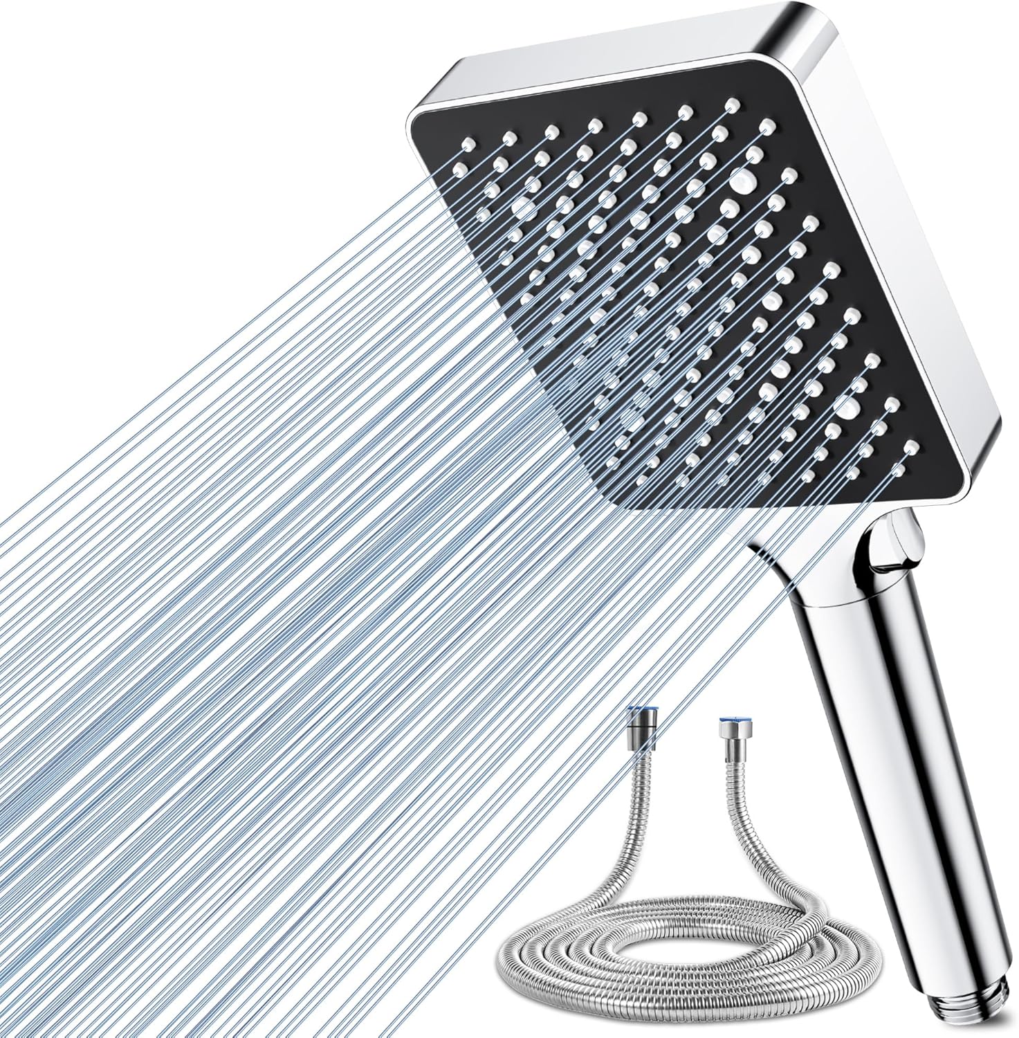 - Newentor High Pressure Shower Head with 6 Modes (Silver-Black) – universal water-saving handheld